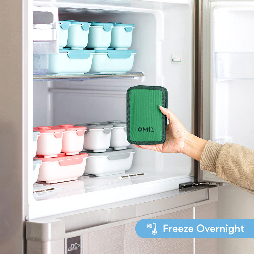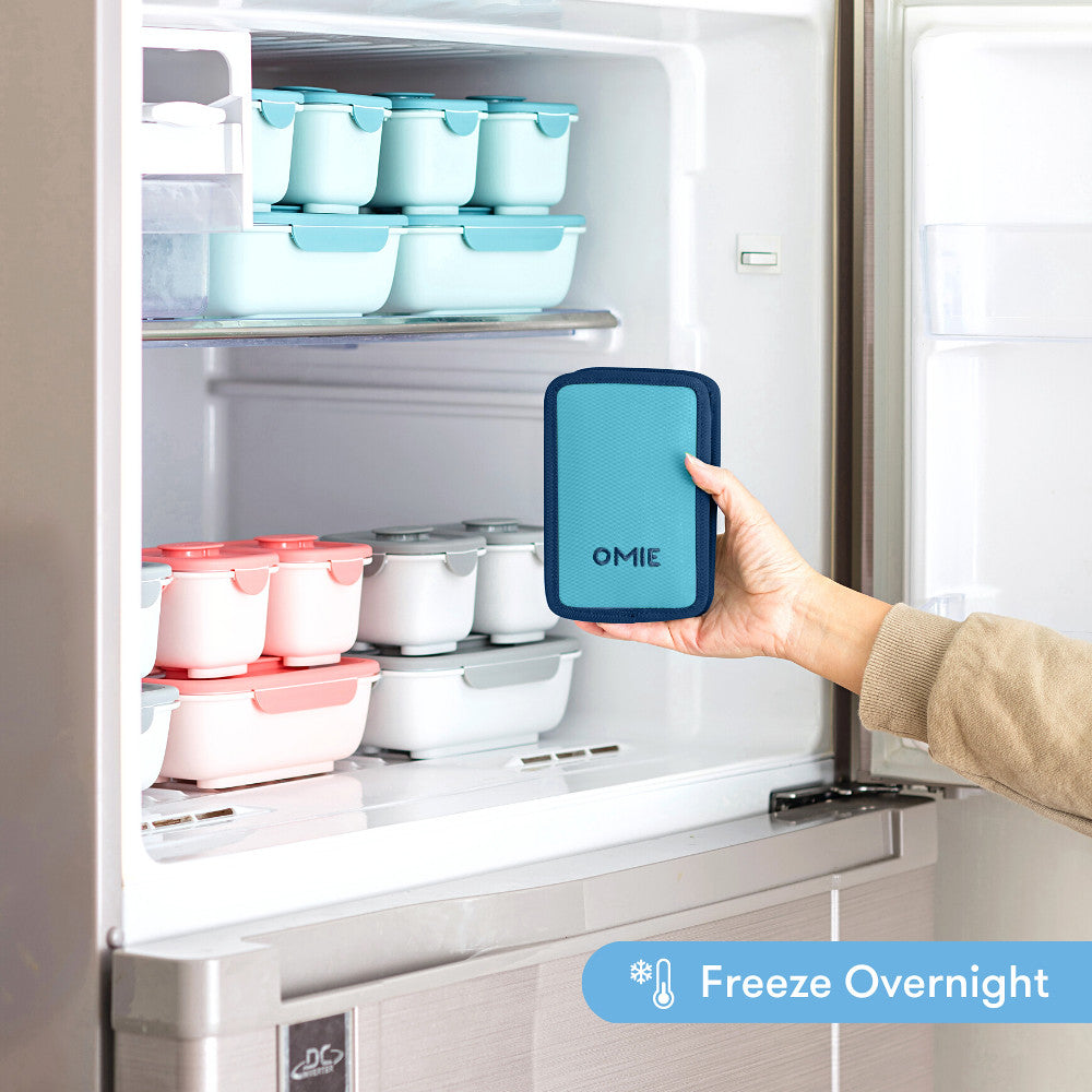 OmieChill is a reusable cooler pouch designed to keep food pouches cold and fresh on the go. Just freeze it for 4 hours, then slip in a snack pouch—perfect for yogurt, purees, or smoothies. It also doubles as an ice pack for your OmieTote, adding extra flexibility to your lunch setup.